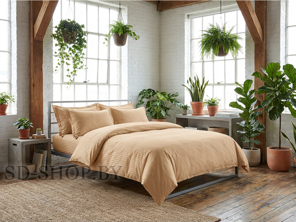Постельное белье Страйп - Сатин "Миндаль" 100% хлопок пр-во Барановичи (РБ).