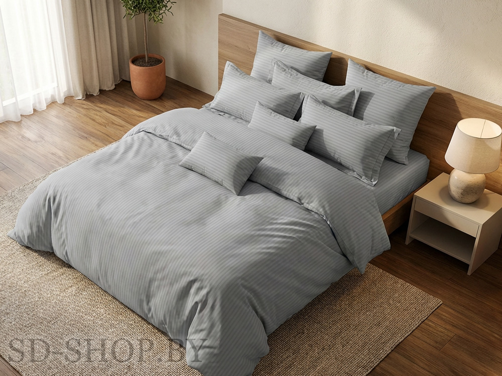 Постельное белье Страйп-Сатин "СЕРЫЙ" 100% хлопок СонМаркет (Барановичи).